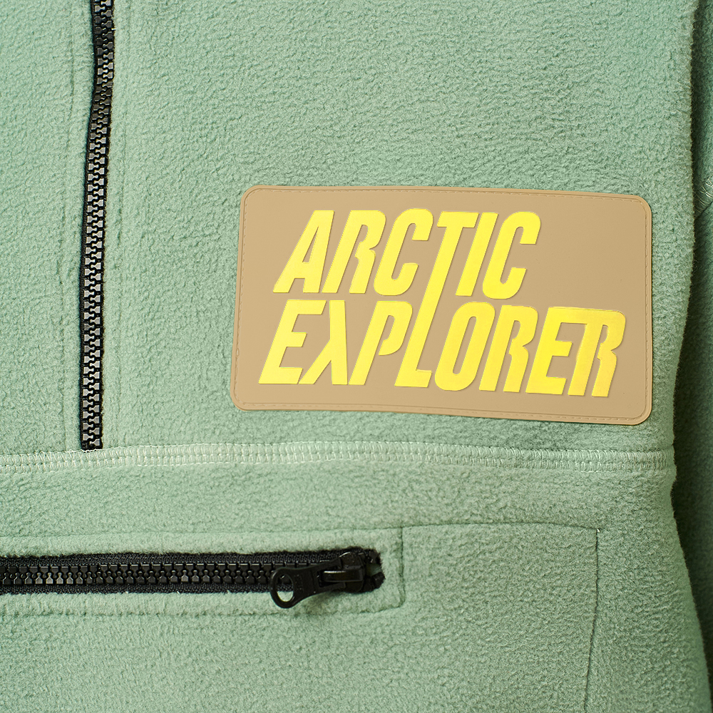 Флис - мягкий приятный к телу материал, состоит из 100% полиэстера. Джемпер имеет утяжку по низу изделия, нагрудный карман на прочной молнии YKK, воротник стойку с аналогичной фурнитурой и яркий шеврон нашивку на груди с наименованием бренда.