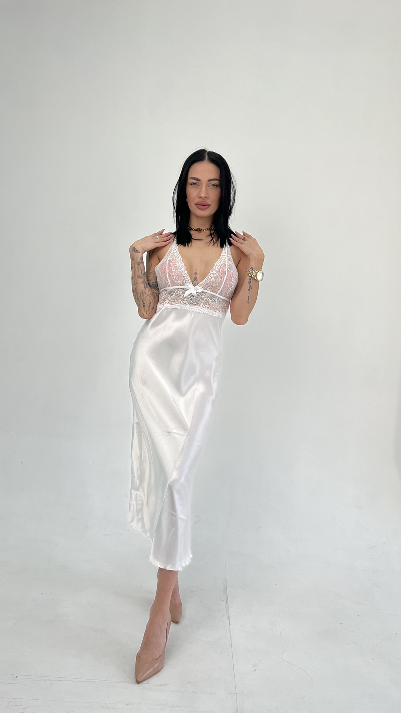 Эта длинная сорочка — сочетание струящегося шелка, изящного кружева и идеальной посадки.