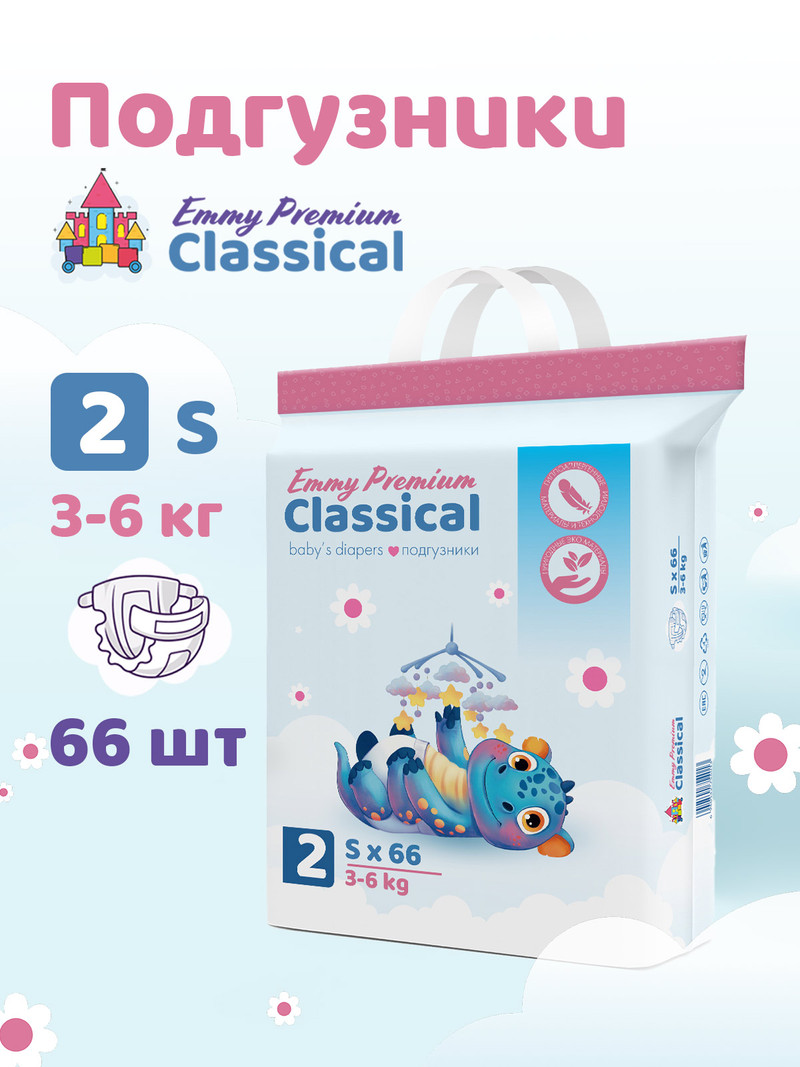 Детские одноразовые подгузники Эмми 2 размера S — забота о комфорте Вашего малыша с первых месяцев жизни! Созданные с учетом анатомии новорожденного и потребностей чувствительной кожи маленьких девочек и мальчиков весом от 3 до 6 кг, они обеспечивают повышенную мягкость и отличную впитываемость.