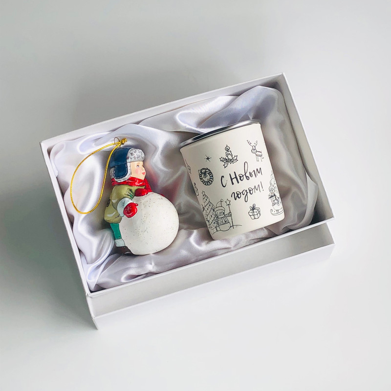 Фарфоровая елочная игрушка ручной работы, ароматическая свеча с ароматом сочной ежевики и игристого шампанского.