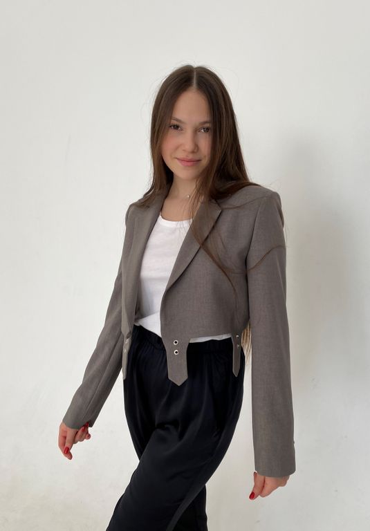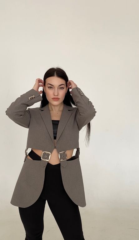 Однобортный жакет трансформер, выполненный из натуральных, дышащих материалов.