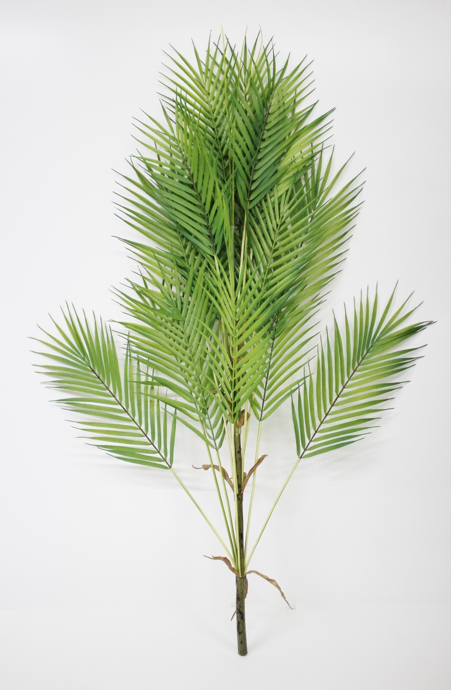 Листья пальмы, используется для декора помещений. Украшение изготовлено из гипоаллергенных материалов (латекс, пластик, металл). Дополнительный уход не требуется. Может применяться на улице. Легко моется и не выгорает от солнечных лучей. Внутри ответвлений проволочная основа, что позволяет растению легко гнуться и не ломаться. 18 ответвлений. Высота в нерасправленном виде 110 см. Ширина около 45 см.