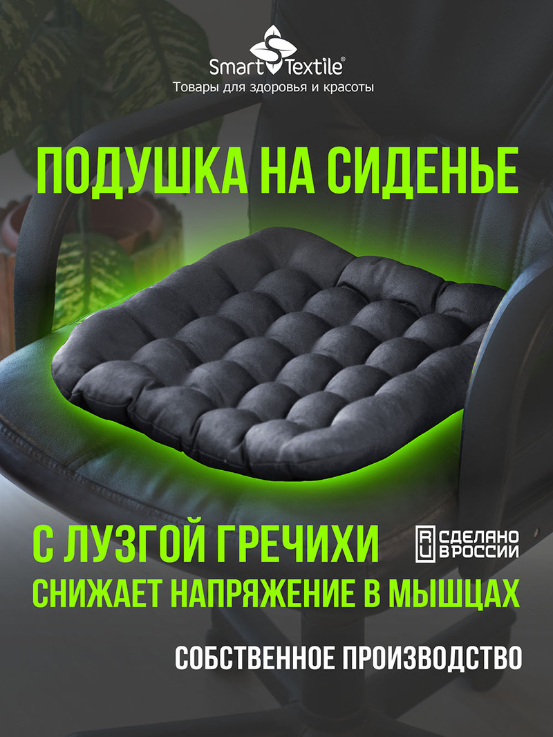 Чтобы купить Подушка на стул для сидения "Уют", размер 40х40х5 см с лепестками лузги гречихи, серая оптом по цене по запросу, свяжитесь с поставщиком. Компания поставщик — Smart textile (ООО «УТ») из города Шуя (Ивановская область). Минимальная партия 30 шт. Способы оплаты: наличными, безналичная оплата.