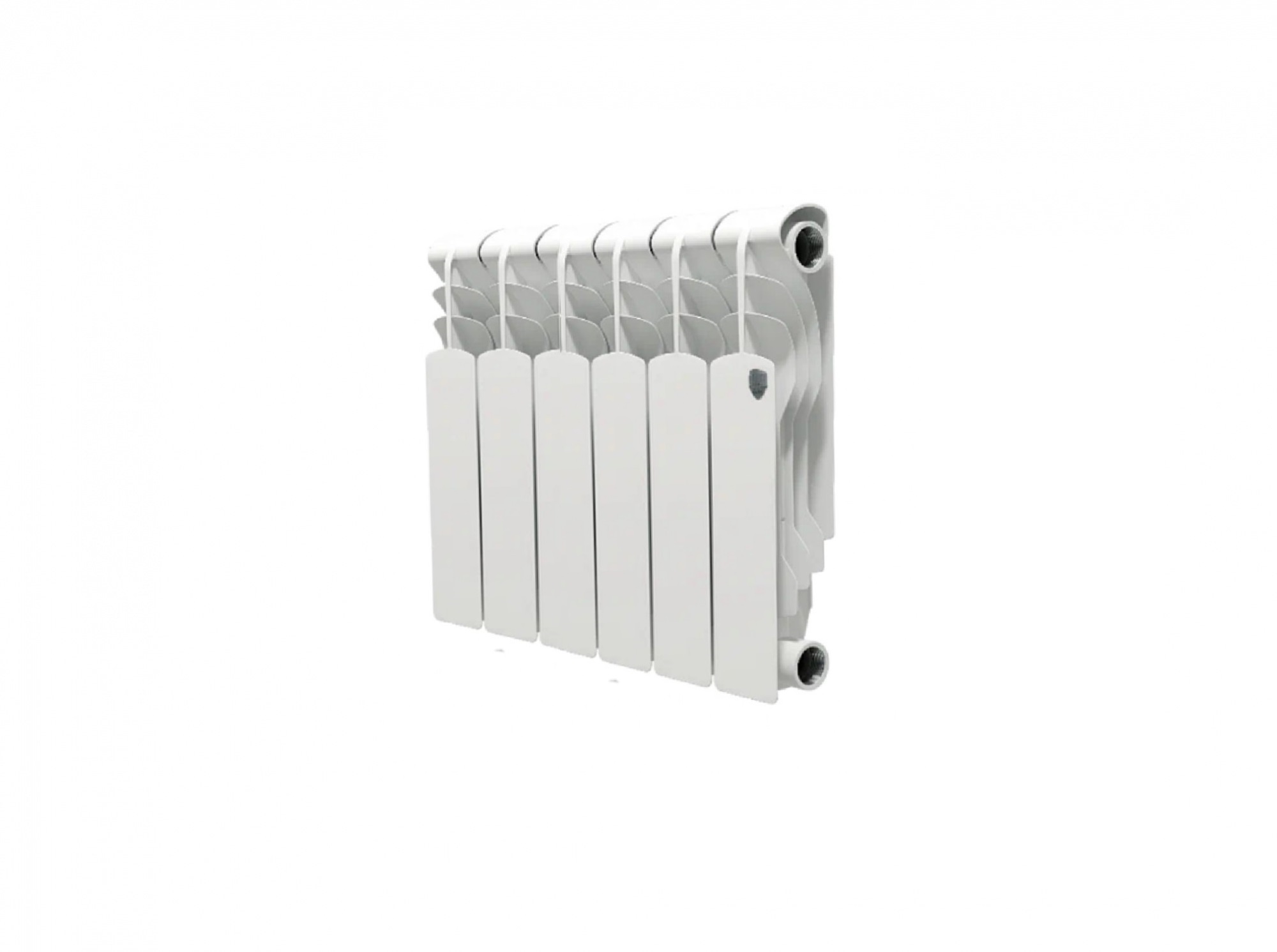 Биметаллический секционный радиатор для центральных систем отопления (квартира, офис и т.д.). Представляест собою алюминиевый радиатор с усиленным стальным коллектором, более стоиким к агрессивным теплоносителям. При высоте потолка 2.5 - 2.75 м и средних теплопотерях 6 секции Royal Thermo Revolution Bimetall с межосевым расстоянием 350 мм достаточно для обогрева 6-8 м?.