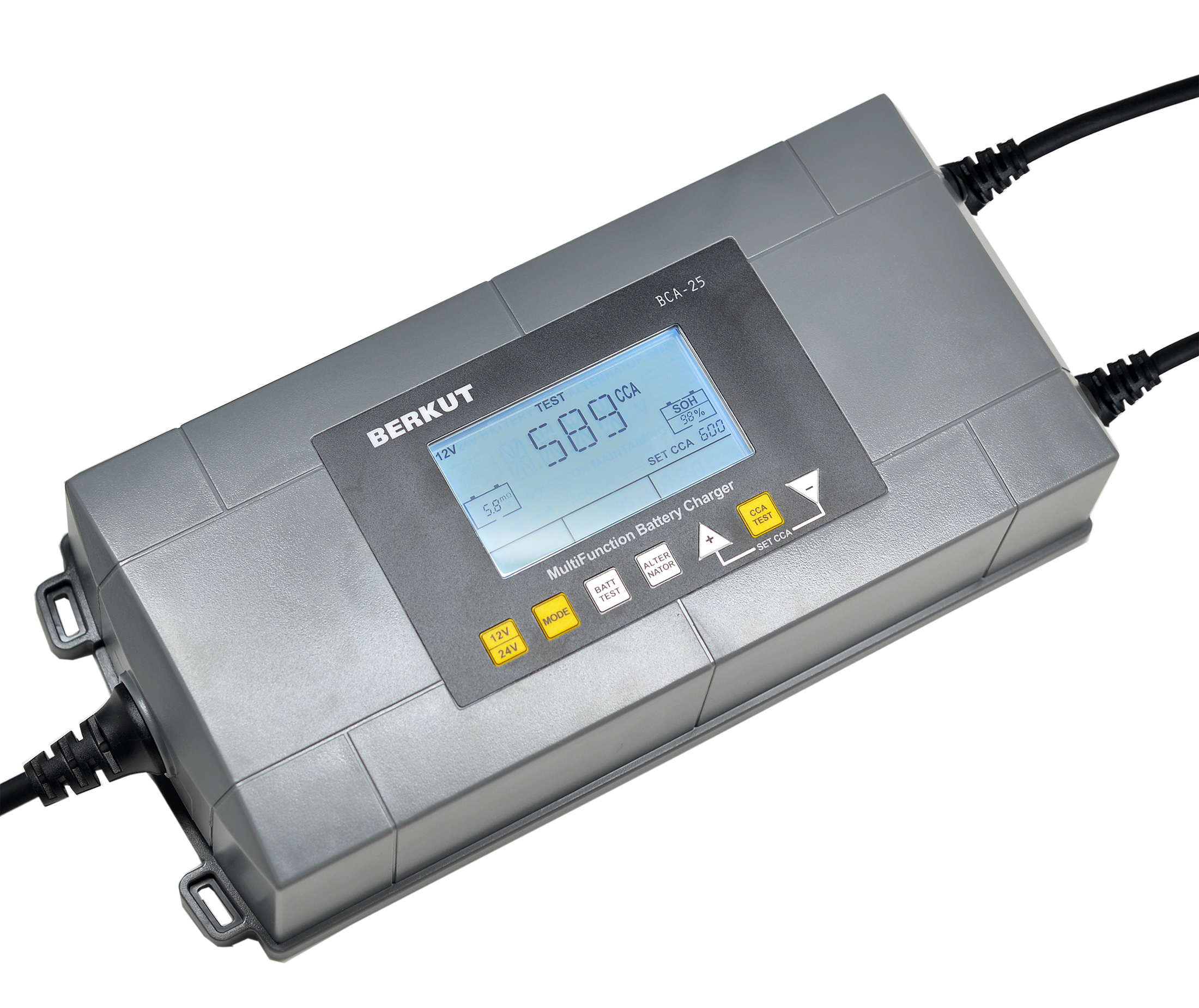 ЗУ, тестер, источник 12/24В! Зарядка всех АКБ 12/24В и пусковые характеристики! ЖК-дисплей. 9 стадий, 3 режима. Источник питания! Напряжение 220В, вых. 12/24В. Макс.ток зарядки 25A. Ёмкость АКБ 45/500А*ч. Размеры 330x150x74мм. Вес 2кг.