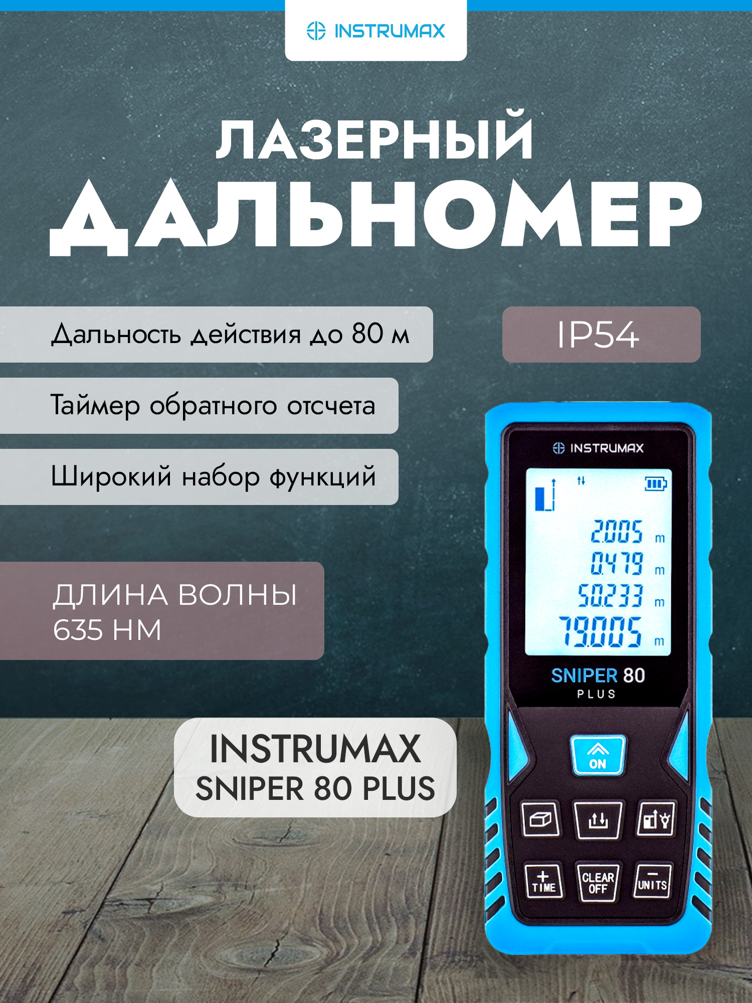 Лазерный дальномер Instrumax Sniper 80 Plus идеальный дальномер для замеров и расчетов на стройплощадке. Использование специального программного обеспечения позволяет сохранять данные на мобильном устройстве.