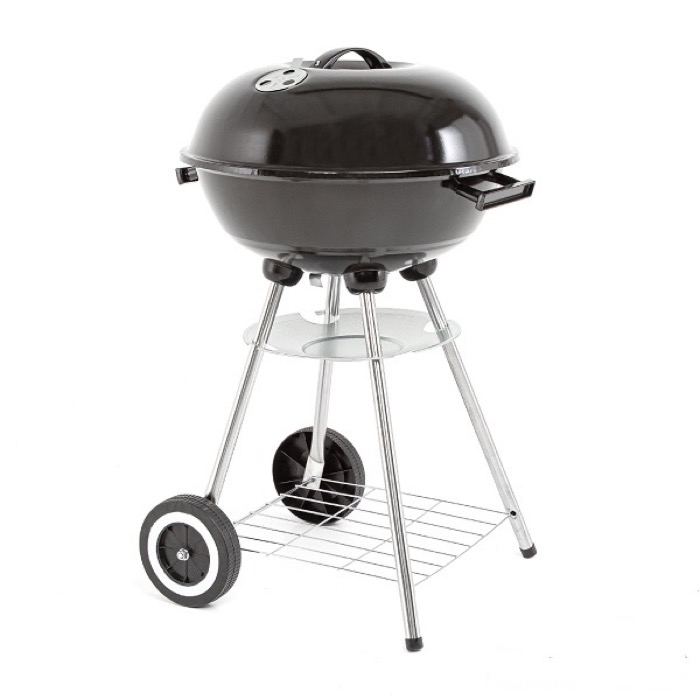 Жаровня уличного гриля-барбекю Green Glade выполнена из углеродистой стали 0,4 мм и покрыта жаростойкой эмалью черного цвета, работает на углях. Накрывается крышкой. На крышке и жаровне есть ручки из жаропрочного пластика (бакелит), которые не нагреваются в процессе приготовления пищи. Жаровня гриля располагается на оптимальной высоте на ножках, на двух из которых есть колеса, облегчающие его перемещение. Диаметр хромированной решетки для приготовления пищи 41 см. Также у уличного гриля есть регулировка подачи воздуха и нижняя полка для мешка с углем.