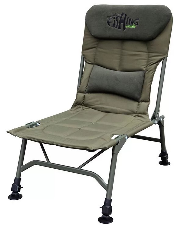 Кресло складное. Отсутствие подлокотников не будет сковывать движения и облегчит доступ к снастям и прикормке.