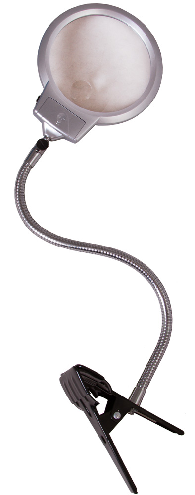 Увеличение: 2–5 крат. Гибкий штатив. Держатель-прищепка. Светодиодная подсветка.