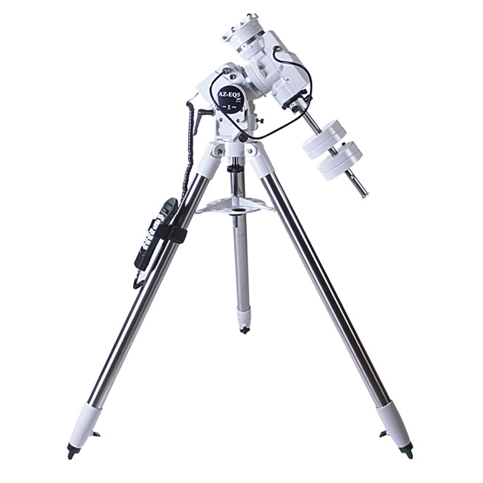 Монтировка Sky-Watcher AZ-EQ5 SynScan GOTO – представитель нового поколения высокотехнологичных монтировок с автонаведением. Устройство монтировки позволяет вести наблюдение как в азимутальном, так и в экваториальном режиме. На обеих осях монтировки установлены усовершенствованные гибридные шаговые приводы, способные быстро, точно и плавно поворачивать монтировку при наведении на астрономические объекты.