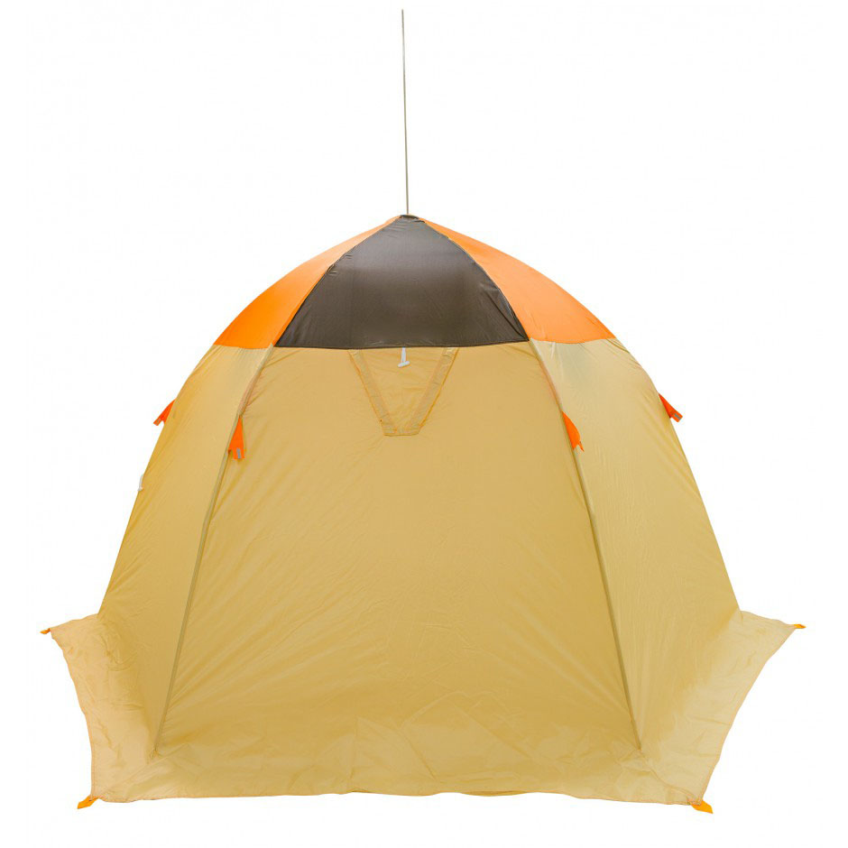 Палатка для зимней рыбалки Омуль 3 производства Митек имеет быстроразборный зонтичный каркас, сделанный из дюралевого прутка (в том числе все соединения), и непромокаемый тент водостойкостью 1000 мм водяного столба).