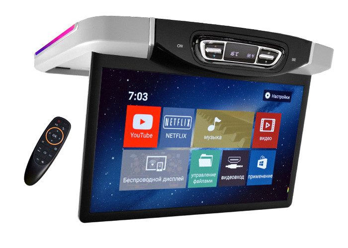 Потолочный монитор ER15AMS имеет табло и кнопки управления климат-контроля для автомобилей Mercedes-Benz. Такая конструкция позволяет не переносить штатные кнопки в другое место.IPS матрица с углом обзора практически 180гр. Дублирование информации с экрана смартфона / планшета (iOS/Android).