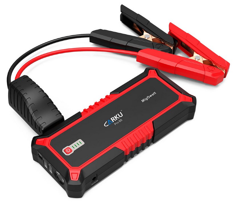 Carku PRO-60 — портативное пуско-зарядное устройство. Топовое устройство в новой линейки CARKU. Емкость 25000 мАч, пиковый ток 1500А, пусковой ток 600А. Улучшенные характеристики для запуска двигателя автомобиля с севшим АКБ и подзарядки мобильных гаджетов.