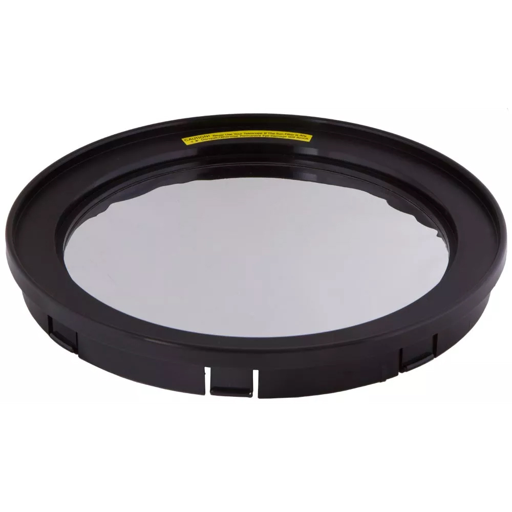 Солнечный фильтр Sky-Watcher для рефлекторов 200 мм позволит смотреть в телескоп на Солнце. Фильтр сделан из светозащитной астрономической пленки и устанавливается внутрь трубы. Он отражает все вредное для зрения излучение, пропуская лишь 0,001% безопасного спектра. Фильтр создает хорошую контрастность, а Солнце через него выглядит нейтрально-белым.