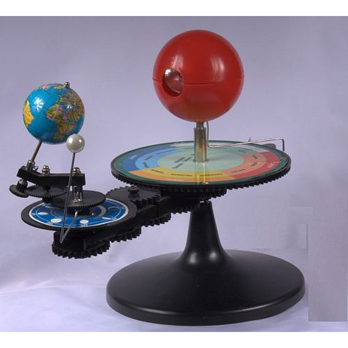Теллурий – это наглядная масштабная модель, которая одновременно показывает годовое движение Земли вокруг Солнца и суточное вращение Земли вокруг оси. Модель «Солнце, Земля, Луна» дополнительно отображает движение еще одного космического объекта – Луны, спутника нашей планеты.