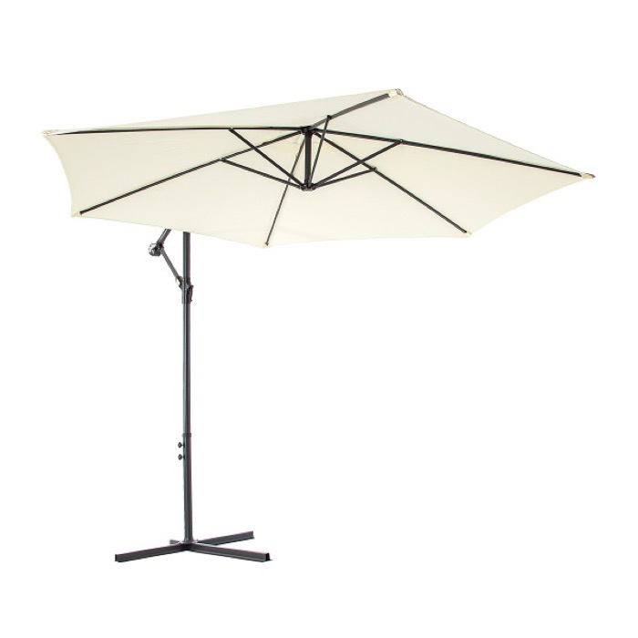 В комплекте с зонтом идет основание – крестовина, на которую для устойчивости можно установить бетонные утяжелители (в комплект не входят) или привернуть ее через имеющиеся отверстия к полу.
