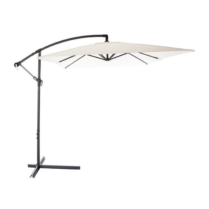 В комплекте с зонтом идет основание – крестовина, на которую для устойчивости можно установить бетонные утяжелители (в комплект не входят) или привернуть ее через имеющиеся отверстия к полу.