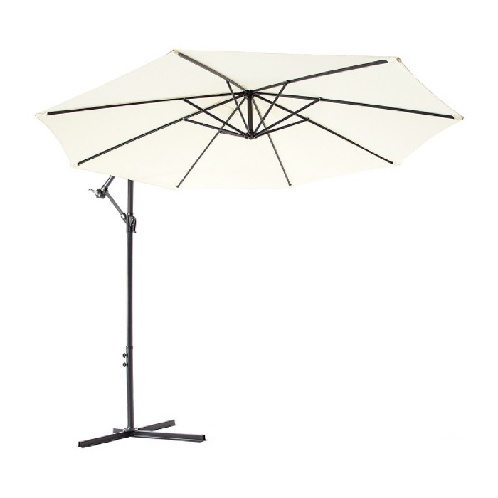 В комплекте с зонтом идет основание – крестовина, на которую для устойчивости можно установить бетонные утяжелители (в комплект не входят) или привернуть ее через имеющиеся отверстия к полу.