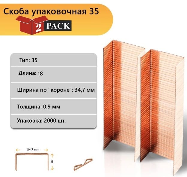 Скобу типа 35 чаще используют для соединения (сшивания) верхних клапанов коробок уже заполненных товаром.