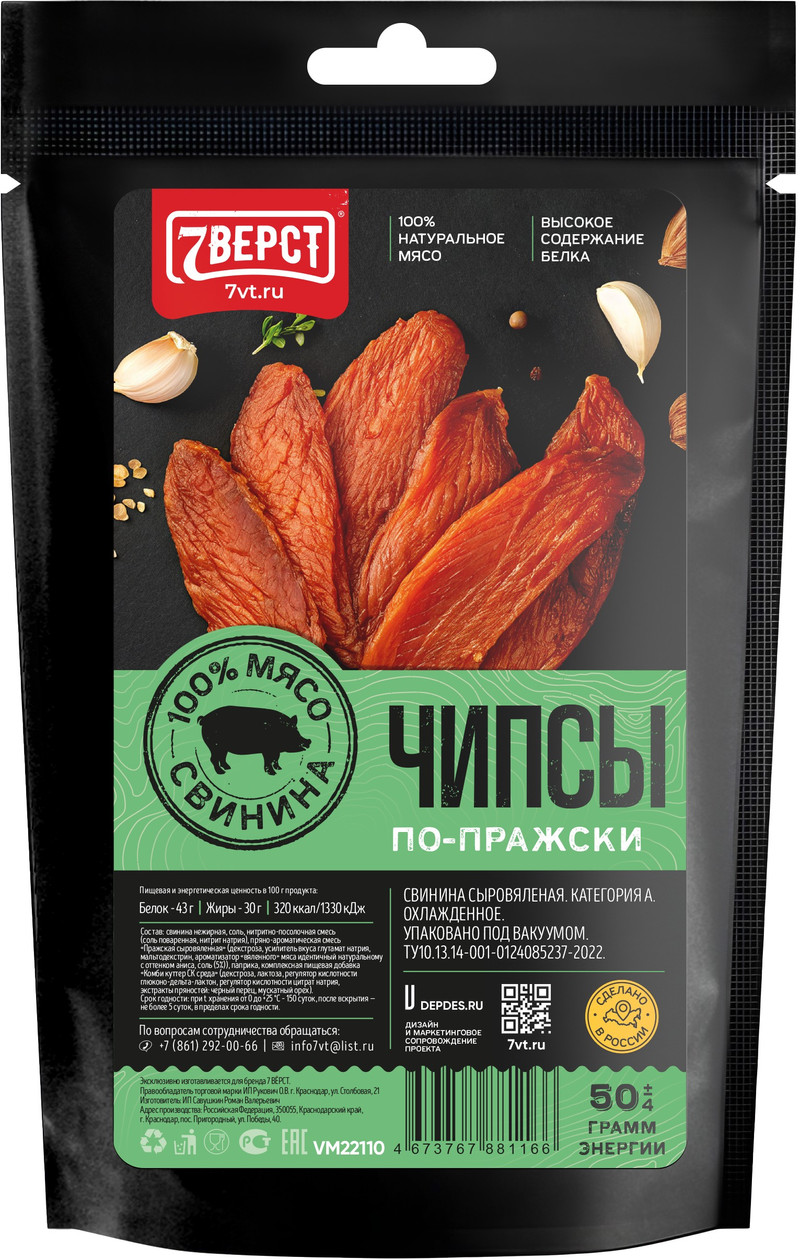Чтобы купить 7 Верст Чипсы свиные по-пражски оптом по цене по запросу, свяжитесь с поставщиком. Компания поставщик — 7 вёрст (ИП «Рукович») из города Краснодар (Краснодарский край). Минимальная сумма оптового заказа: 10000 руб. Доставка возможна самовывоз, транспортной компанией, автомобилем, авиатранспортом, железной дорогой, курьером. Способы оплаты: наличными, безналичная оплата, кредитные карты, электронные деньги.