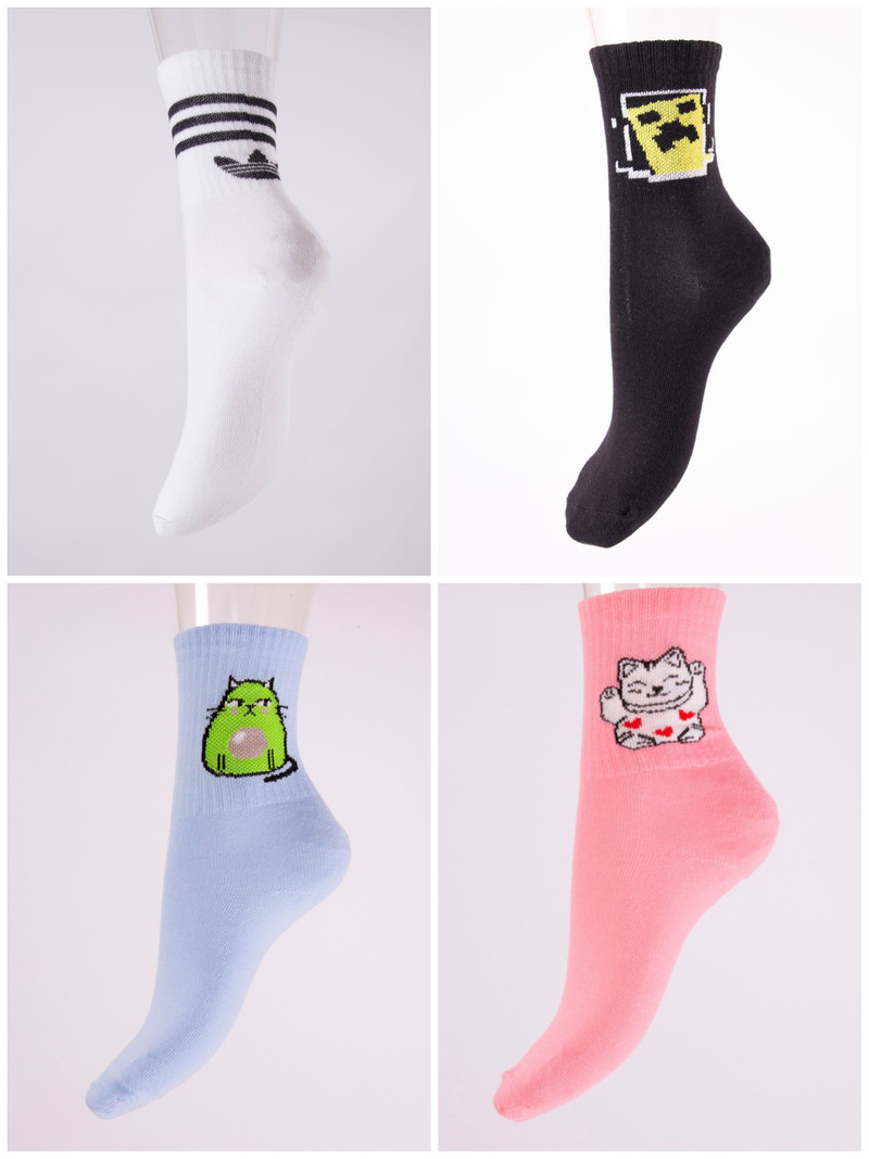 Носки удлиненные, с участком резинки и рисунком на паголенке, модель 819.