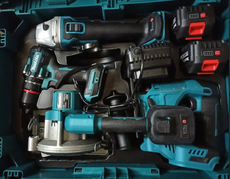 Набор аккумуляторного инструмента 4 в 1. Входит: циркулярная пила на 140 мм (без диска), УШМ на 125 мм с регулировкой оборотов, Шуруповерт с 3 режимами работы и 2 скоростными режимами и Лобзик. Так же в комплекте идет 2 АКБ и зарядка. Все поставляется в кейсе.