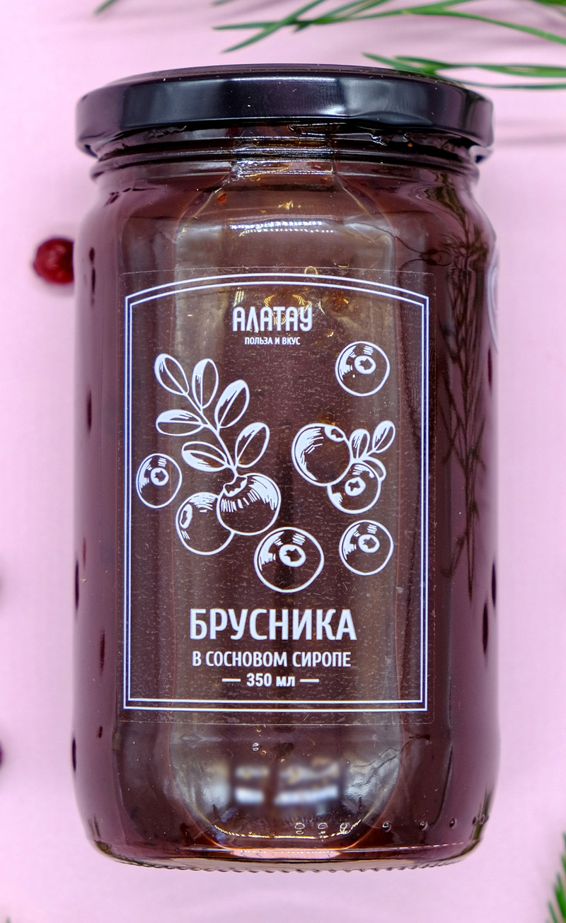 ЯГОДА топпинг (350 мл/450 гр): БРУСНИКА, СОСНОВЫЙ СИРОП, (стекло/банка). Квант 8 шт.