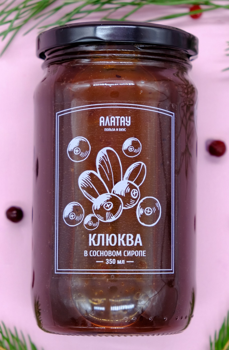 ЯГОДА топпинг (350 мл/450 гр): КЛЮКВА, СОСНОВЫЙ СИРОП, (стекло/банка). Квант 8 шт.