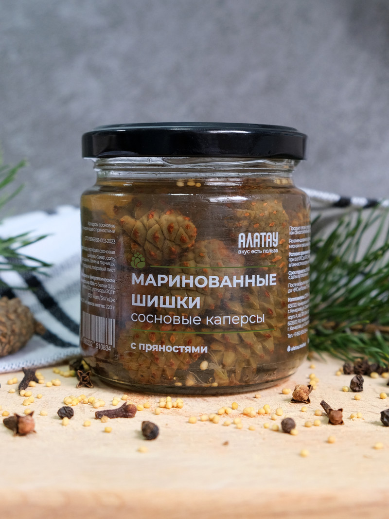 КАПЕРСЫ сосновые (200мл/220гр): С ПРЯНОСТЯМИ (ст/б). Квант 8 шт.