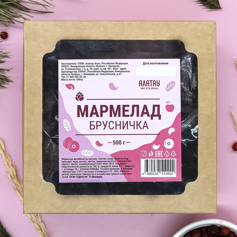 МАРМЕЛАД (0,5кг): “БРУСНИЧКА”(флоупак). Квант 3⁄10 шт.