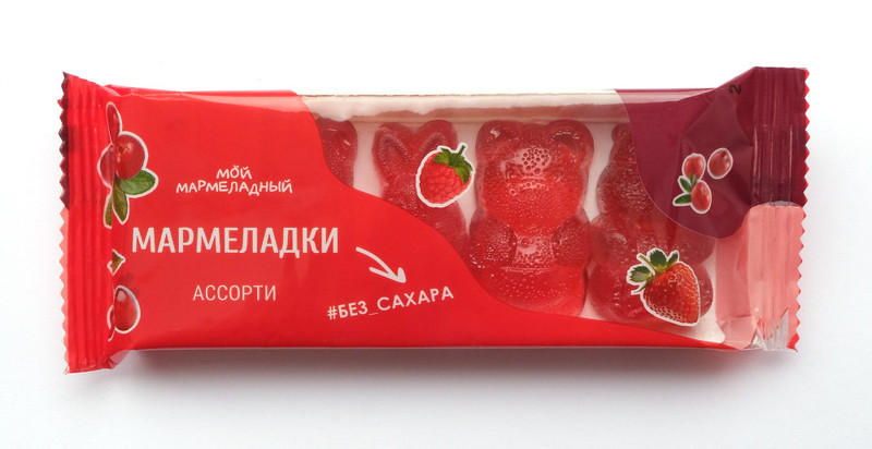 МАРМЕЛАД ягодный на фруктозе АССОРТИ (60 гр): брусника/вишня/клубника/клюква/малина (подложка, флоупак, ЖВ). Выполнен в виде фигурок животных.