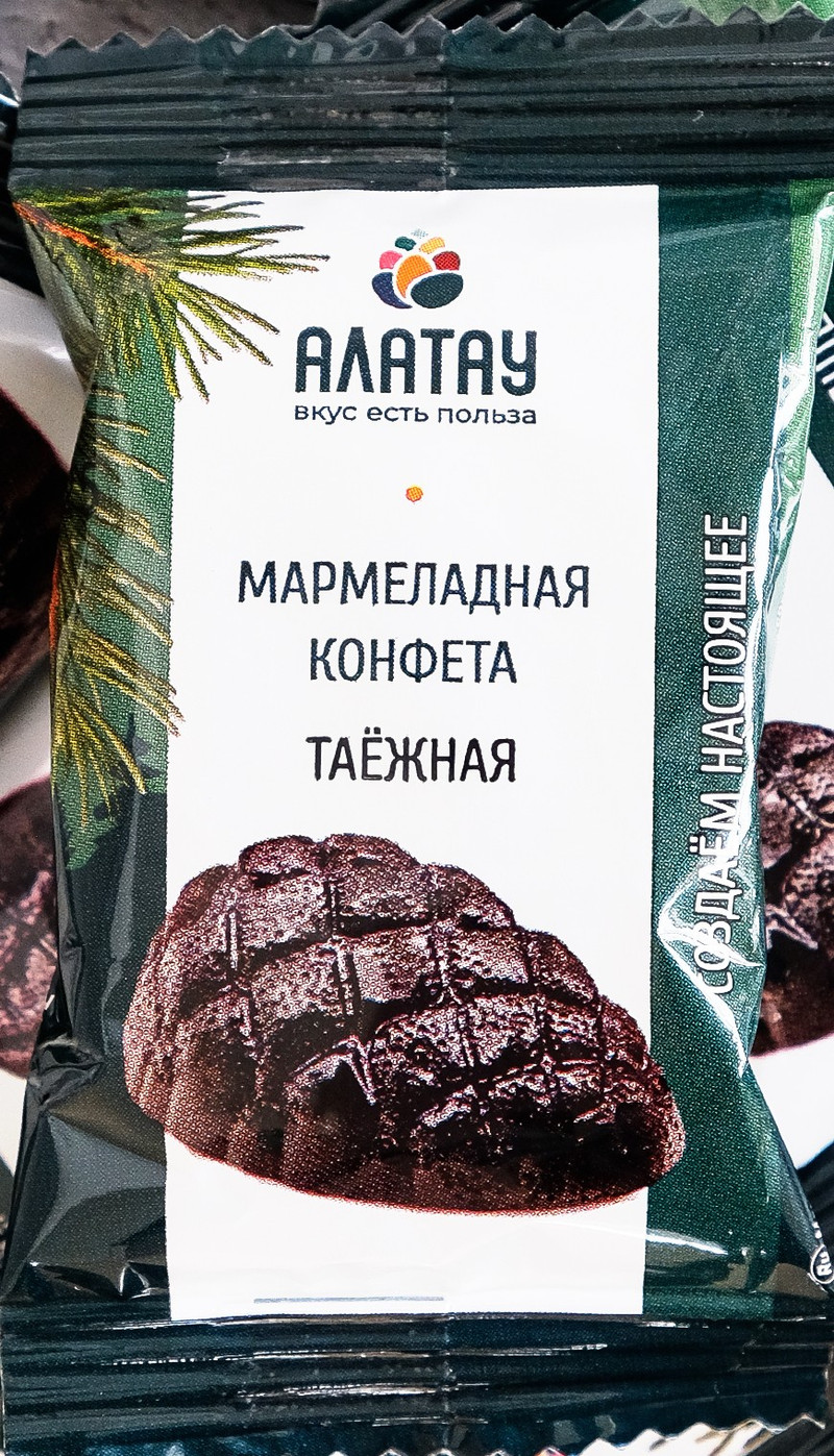 МАРМЕЛАД сосновый КОНФЕТА: ТАЁЖНЫЙ (весовые, цветной флоупак, в индивидуальной упаковке со штрих-кодом).