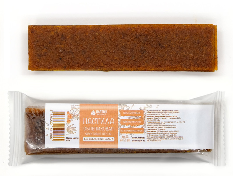 ПАСТИЛА набор (18шт*45гр): ОБЛЕПИХА (брусок, ф/п, гофра). Квант 8 шт. Вес бруска 45 гр.
