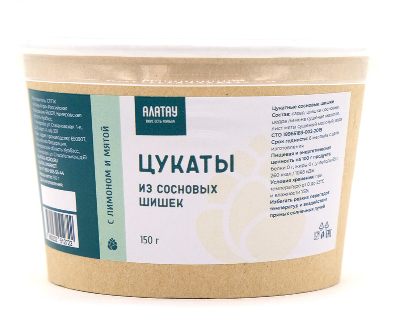 Чтобы купить ЦУКАТЫ сосновые (150 гр): ЛИМОН/МЯТА (крафт/стакан) КА-00003174 оптом по цене 270 руб., свяжитесь с поставщиком. Компания поставщик — АЛАТАУ (Алатау-Агро) из города Кемерово (Кемеровская область). Минимальная сумма оптового заказа: 10000 руб. Минимальная партия 18 шт. Доставка возможна самовывоз, транспортной компанией, автомобилем, курьером. Способы оплаты: наличными, безналичная оплата.