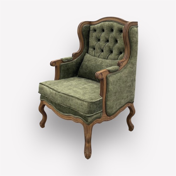 Дизайн кресла Сезарина продуман до мелочей. Его высокая спинка с характерными "ушами" создает атмосферу уединенности и защищенности, позволяя вам расслабиться и отдохнуть. Удобная подушка, идущая в комплекте, добавляет дополнительный комфорт и поддерживает правильное положение спины.