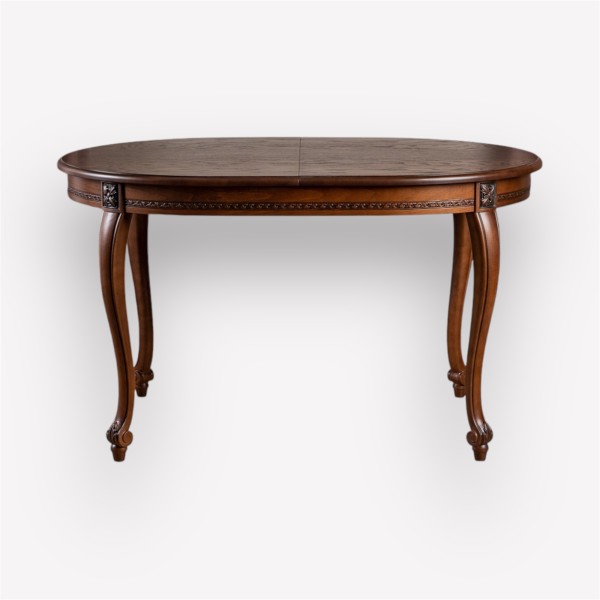 Изготовленный из прочного кавказского бука, стол Квартет обладает уникальной столешницей с тиснением и фрезеровкой. Длина 130 см позволяет комфортно разместить гостей, обеспечивая достаточно места для сервировки. Ножки стола выполнены в стиле кабриоль, что придает ему утонченность и грациозность.