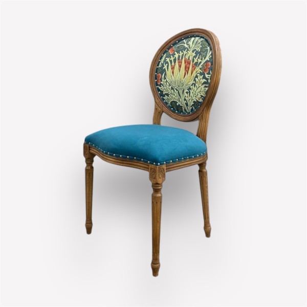 Декорирование стула может быть выполнено в двух вариантах на ваш выбор: молдинг в виде декоративных гвоздиков или кантик из такой же ткани, что позволяет дополнить его стиль и гармонично вписать в любое пространство. Природный массив дерева гарантирует экологичность, прочность и устойчивость изделия, а также его долговечность в эксплуатации.