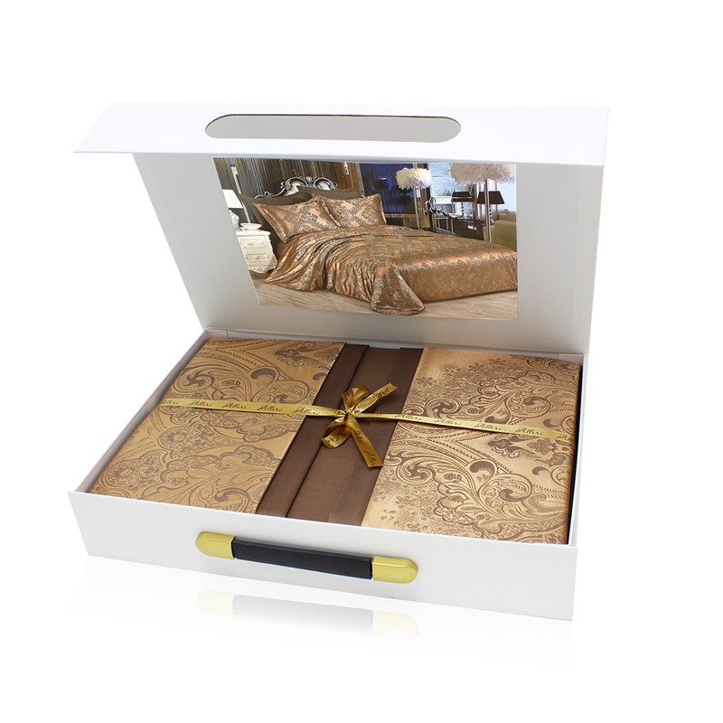 Сатин Жаккард — благородная плотная ткань с рельефным рисунком, гладкая и прочная. Используется для пошива дорогого постельного белья Alleri. Ткань представляет собой идеально ровную шелковистую поверхность без ворсинок! Проведя по ней рукой можно ощутить шелковистую мягкую поверхность!