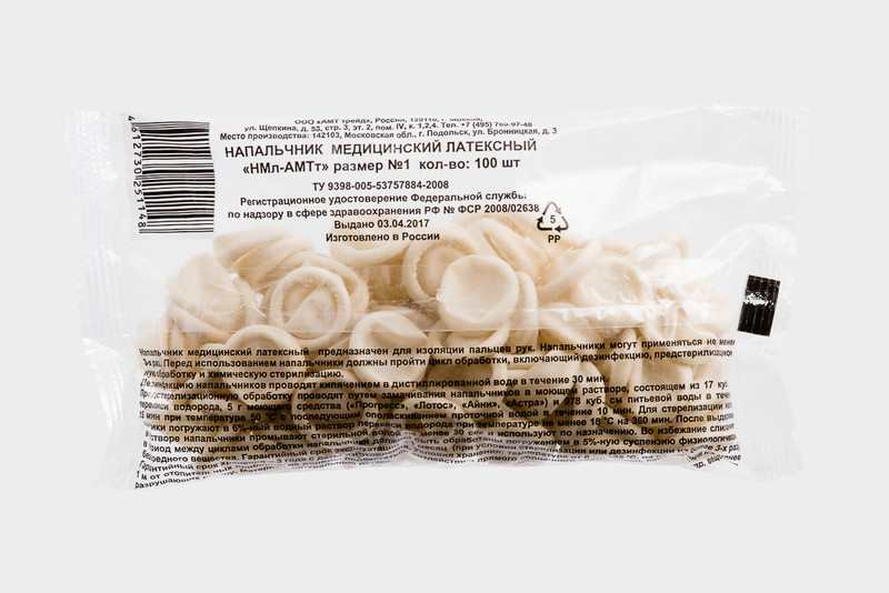 Напальчники выпускаются в упаковке по 100 штук для госпитальных учреждений.