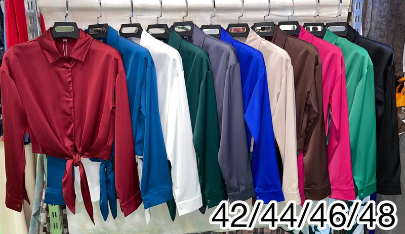 Эффектные и стильные рубашки из мягкого атласа — идеально подчёркивают фигуру за счёт аккуратной завязки спереди. Лёгкий блеск ткани придаёт образу утончённость и женственность.