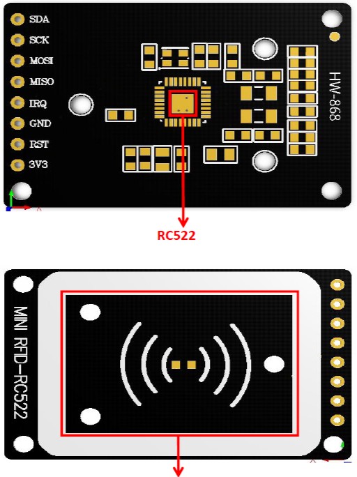 Схема считывателя карт разработана на основе чипа RC522. Это бесконтактный модуль для чтения и записи карт с низким напряжением и компактными размерами. Связь с хостом осуществляется по интерфейсу SPI.