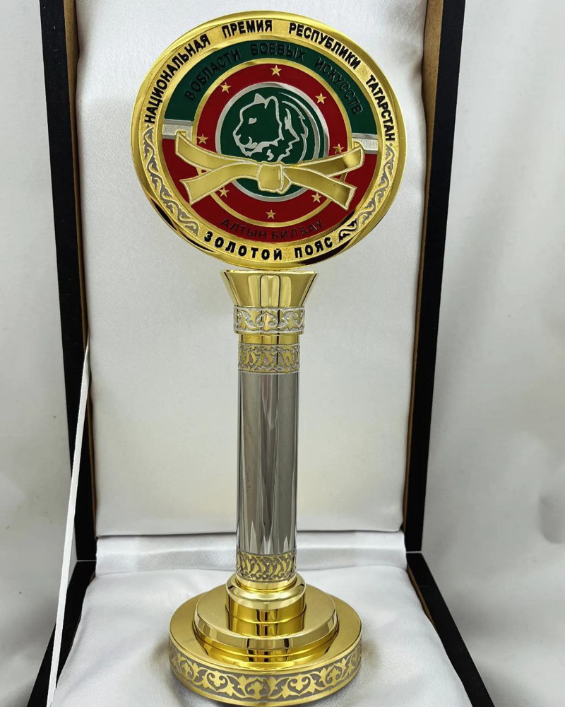 В объявлении представлен имиджевый кубок для ежегодной премии “Золотой Пояс” РТ