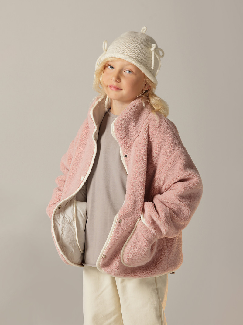 Двусторонняя куртка для девочки — универсальное решение для переменчивой погоды. Утеплитель Термофин 60 г. Одна сторона выполнена из мягкого экомеха: застежка на кнопки и высокий воротник стойка сохраняют тепло и защищают горло от ветра. Рукав со спущенным плечом придает модели современный силуэт и не сковывает движений. Два накладных кармана практичны для мелочей и согревания рук, на одном из них аккуратно размещен логотип бренда. Контрастная декоративная окантовка делает образ завершенным и стильным. Обратная сторона изготовлена из ткани с водоотталкивающей пропиткой, что обеспечивает дополнительную защиту в сырую погоду. Здесь также предусмотрены два накладных кармана, а логотип бренда элегантно размещен на спинке. Контрастная окантовка по всему изделию подчеркивает форму и акцентирует внимание на деталях. Легкая смена стороны позволяет адаптировать образ под настроение и погодные условия. Куртка рассчитана на температурный режим +0…+10 °C; при выборе дополнительно учитывайте степень активности ребенка и климат региона — при сильном ветре или высокой влажности рекомендуем комбинировать с теплым базовым слоем. Практичный, теплый и стильный вариант для прогулок и повседневной носки.