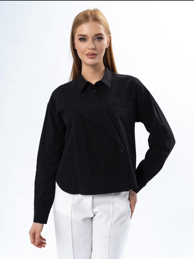Описание: рубашка из хлопкового льна с отложным воротником.