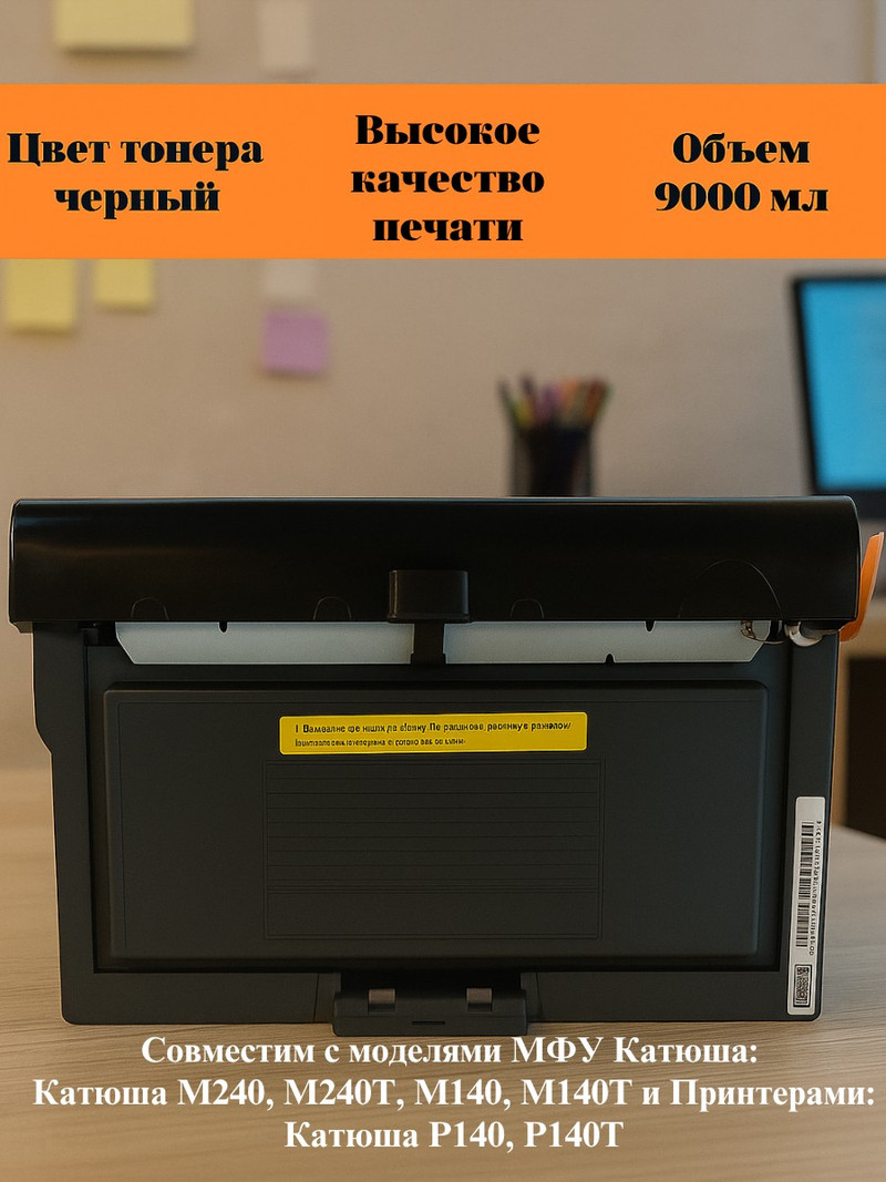 Ресурс этого картриджа составляет 9 000 отпечатков, что позволяет использовать его долгое время без необходимости замены. Кроме того, он совместим со многими моделями МФУ Катюша, такими как, МФУ: Катюша M240, M240T, M140, M140T и Принтерами: Катюша P140, P140T..