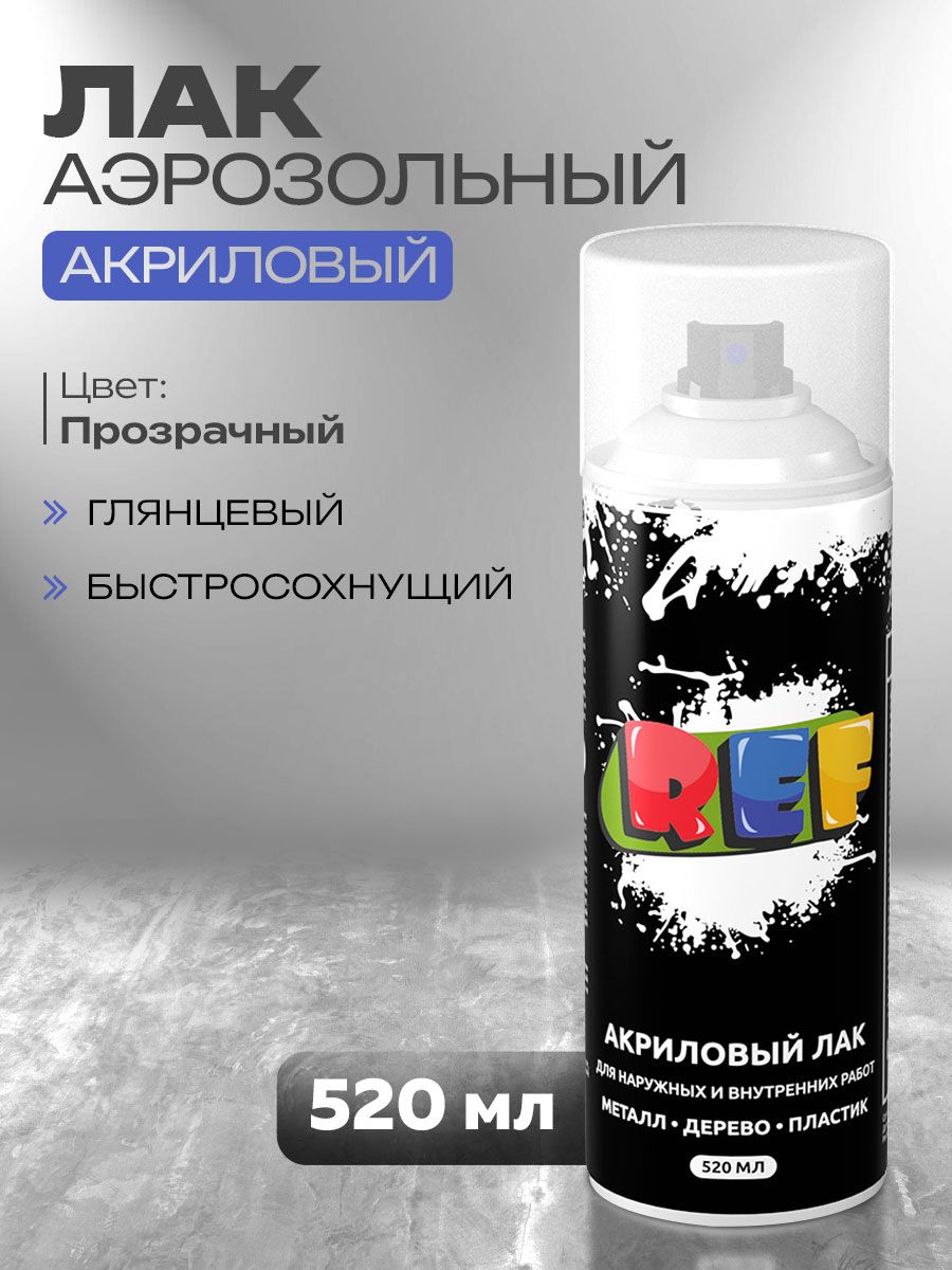 Лак акриловый автомобильный прозрачный глянцевый аэрозольный REF, спрей в баллончике для кузова авто, универсальный, 520 мл