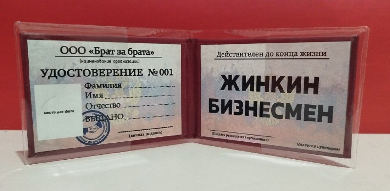 Чтобы купить Удостоверение "Жинкин бизнесмен" оптом по цене 100 руб., свяжитесь с поставщиком. Компания поставщик — АвтоХам126 (ИП «ИП Мустафаев Т. К.») из города Пятигорск (Ставрополье). Минимальная сумма оптового заказа: 5000 руб. Доставка возможна самовывоз, транспортной компанией, автомобилем.