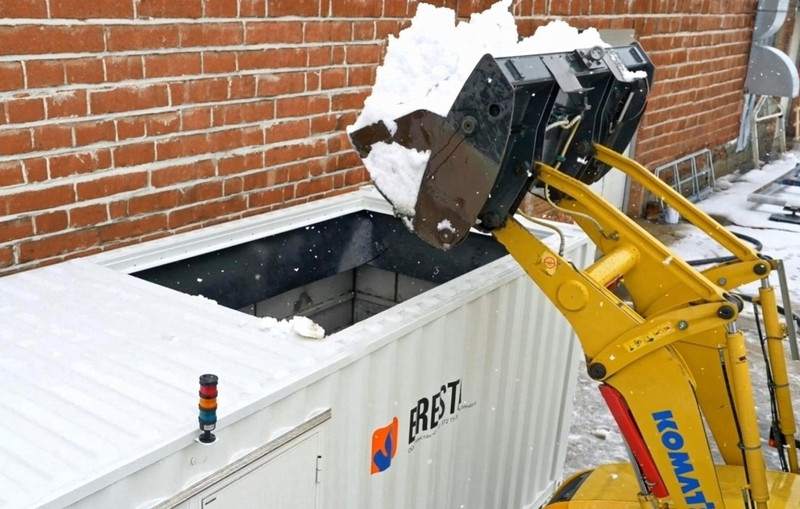 Мобильная снегоплавильная установка, работающая в автоматическом режиме на дизельном топливе.
