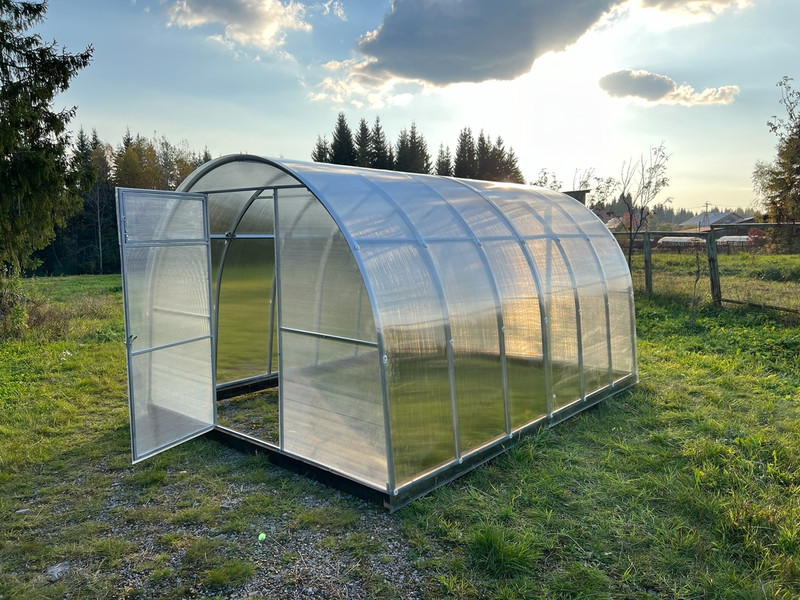Данная теплица имеет болтовое соединение или крепление сапморезами.