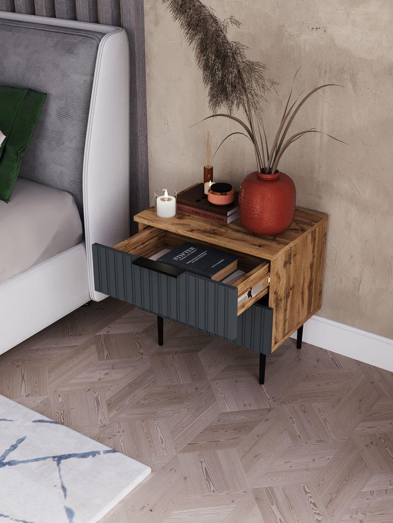 Чтобы купить Прикроватная тумба 500_360_486, 2 ящ., опора конус черн, фасад ВЕЛЬВЕТ МДФ Графит Софт, цвет Дуб Во оптом по цене 4370 руб., свяжитесь с поставщиком. Компания поставщик — Б2Б Фабрика (ИП «Дахневич С.В.») из города Москва. Доставка возможна самовывоз, транспортной компанией, автомобилем, курьером.